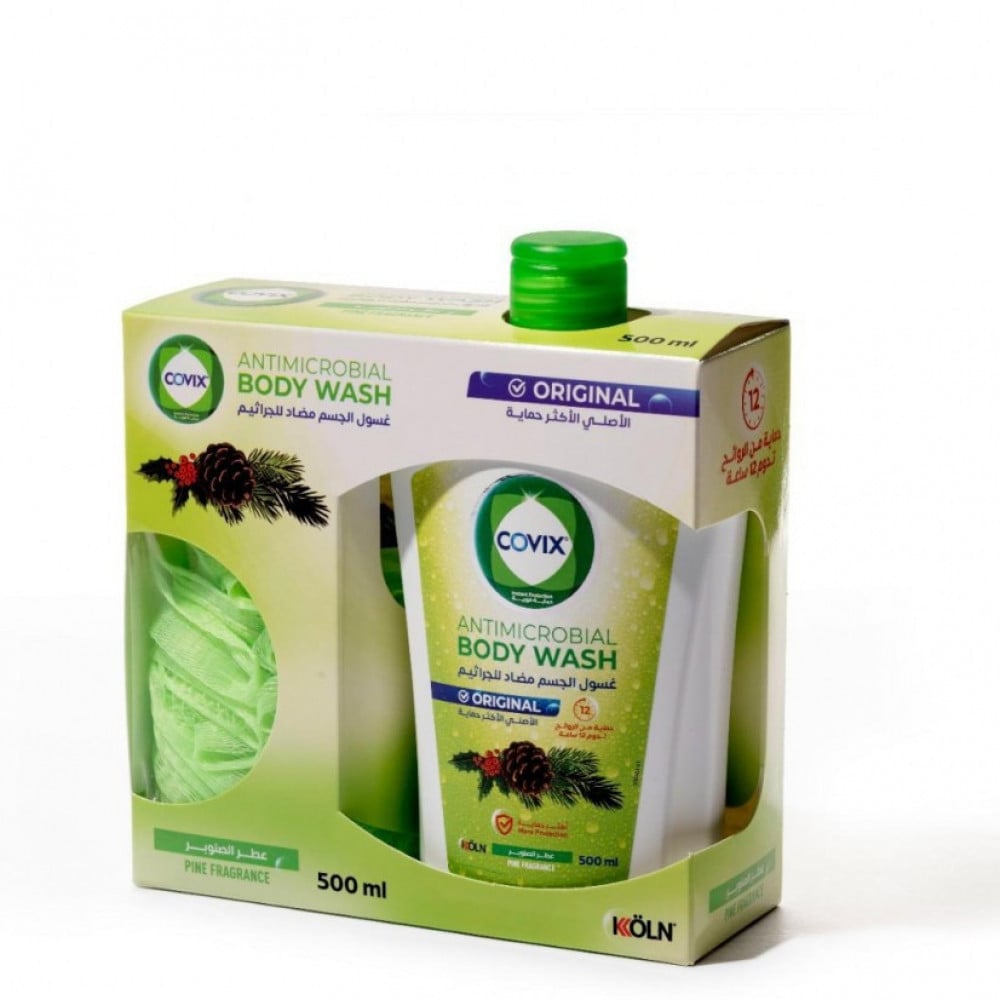 كوفيكس غسول للجسم مضاد للجراثيم بعطر الصنوبر , 500مل مع الليفة
