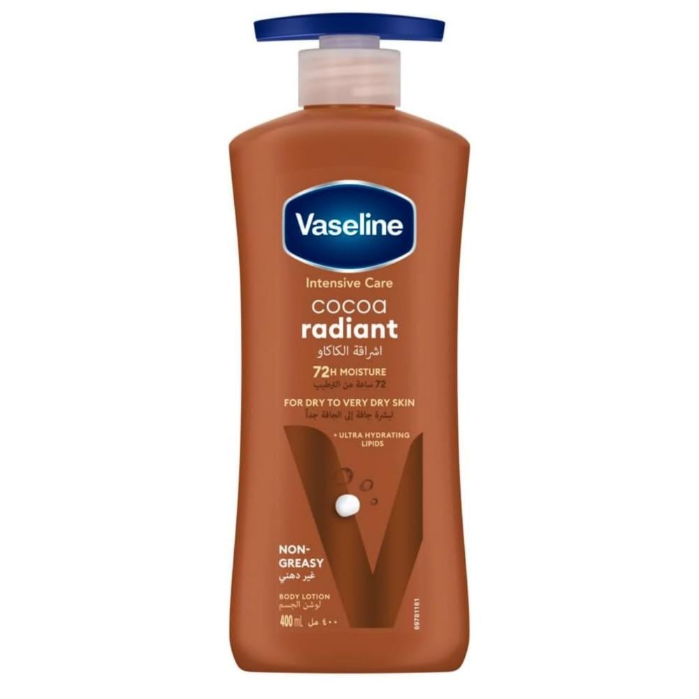 فازلين لوشن بالكاكاو لترطيب وتغذية البشرة - 400 مل هو الاختيار الأمثل للحصول على بشرة ناعمة ومفعمة بالحيوية مع عناية فائقة تدوم طوال اليوم. اجعليه جزءًا من روتينك اليومي للعناية بجمالك!