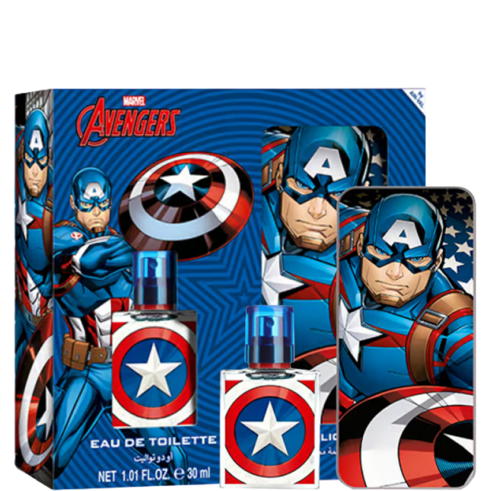 مجموعة هدايا عطور اطفال مارفيل افينجر كابتن امريكا 30 مل + مقلمية معدنية