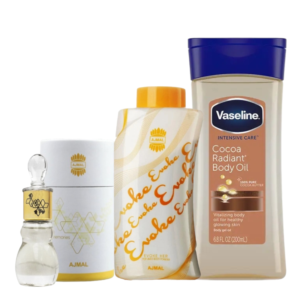 يمكنك مزج الثلاثة المنتجات مع بعض واستخدامها عند الحاجه لتعطير وترطيب الجسم.