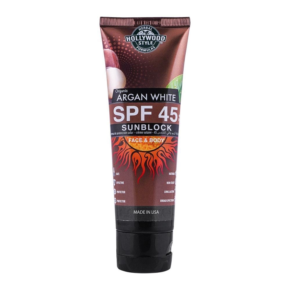 هوليود ستايل كريم الحماية من اشعة الشمس للوجة والجسم قوة 45+ بخلاصة الارغان لترطيب وتفتيح البشرة - 100مل